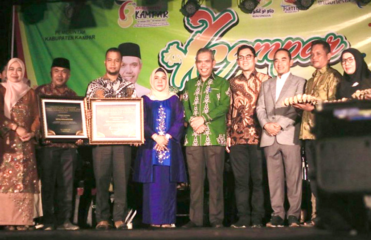 Penyerahan penghargaan itu dilakukan langsung oleh Penjabat (Pj) Bupati Kampar Dr H Kamsol MM, pada malam pembukaan Kampar Expo 2023 di lapangan Merdeka Bangkinang, Jumat malam (24/02/2023) kemaren. Tak hanya penghargaan, kedua kepala desa tersebut juga diberikan hadiah umrah bersama istri masing-masing, plus bantuan telur untuk 3 panti asuhan dari Ketua TP PKK, Deswita Kamsol.