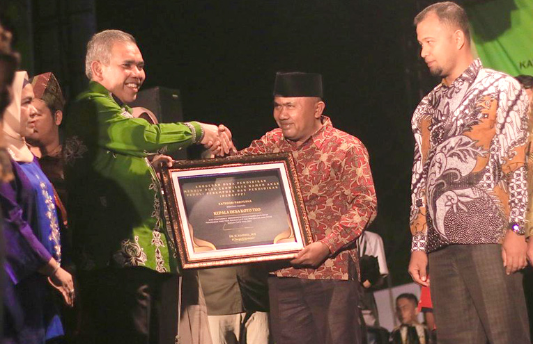 INDRAGIRIONE.COM, BANGKINANG - Desa Koto Tuo Kecamatan XIII Koto Kampar dan Sungai Tarap, Kecamatan Kampa menerima Anugerah Desa Pendidikan (ADDIK) menuju Desa Ekowisata Ramah Anak Peduli Perempuan dan Pendidikan (DERAPPP) untuk kategori Paripurna. Anugerah tersebut diberikan atas komitmen tinggi yang ditujukkan kedua desa itu dalam penanganan Anak Tidak Sekolah (ATS)/Anak Putus Sekolah (APS).