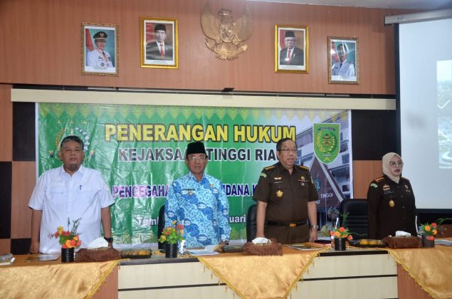 Kegiatan yang ditaja oleh Kejaksaan Tinggi Prov. Riau ini dilaksanakan selama satu hari dengan dihadiri Kajati Riau yang di wakili oleh Asintel Kejati Riau Raharjo Budi Kisnato dan jajaran dengan tujuan untuk memberikan pengetahuan, pemahaman dan pencegahan tindak pidana korupsi khususnya terkait penyelenggaraan pemerintahan serta pelayanan kepada masyarakat.