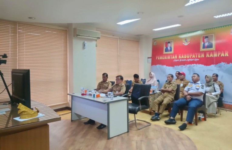INDRAGIRIONE.COM, BANGKINANG - Mewakili Penjabat (Pj) Bupati Kampar, Kepala Inspektorat Daerah Kabupaten Kampar, Febrinaldi Tri Darmawan SSTP MSi, mengikuti Rapat Koordinasi (Rakor) Rutin Mingguan tentang Pengendalian Inflasi Daerah, via zoom meeting dari Ruang Rapat Lantai II Kantor Bupati Kampar, Senin (20/2/2023).