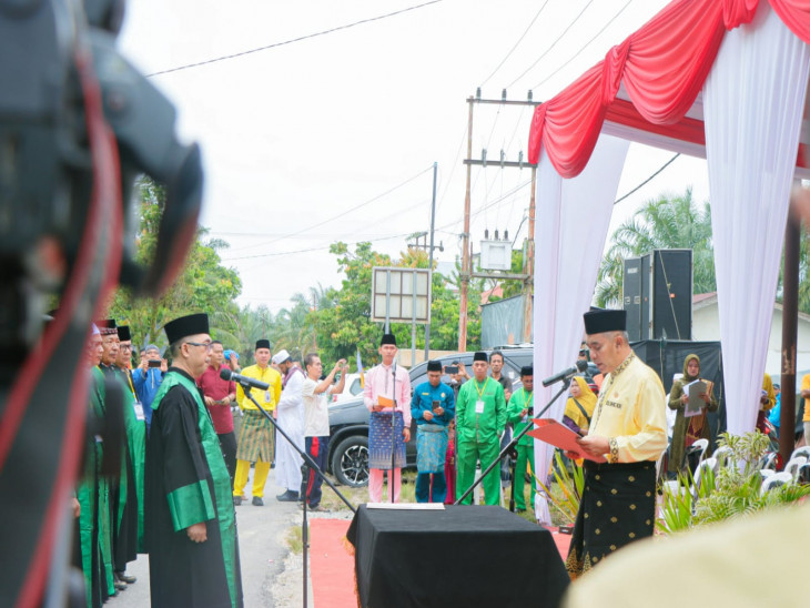INDRAGIRIONE.COM, RUMBIO JAYA - Sebelum Musabaqah Tilawatil Quran ( MTQ) ke-52 Tahun 2023 Tingkat Kabupaten Kampar dibuka, Pj Bupati Kampar Dr H Kamsol MM terlebih dahulu melantik dan mengukuhkan para Dewan Hakim. Pelantikan diadakan di halaman Pelepasan Pawai Taaruf, di Simpang Petai Kecamatan Rumbio Jaya, Senin (13/3/2023).