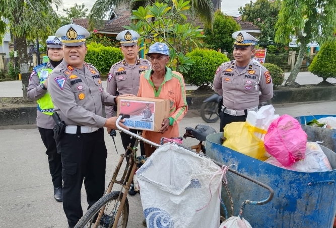 Sat Lantas Polres Inhil Bagikan Sembako kepada Tukang Becak dan Petugas Kebersihan