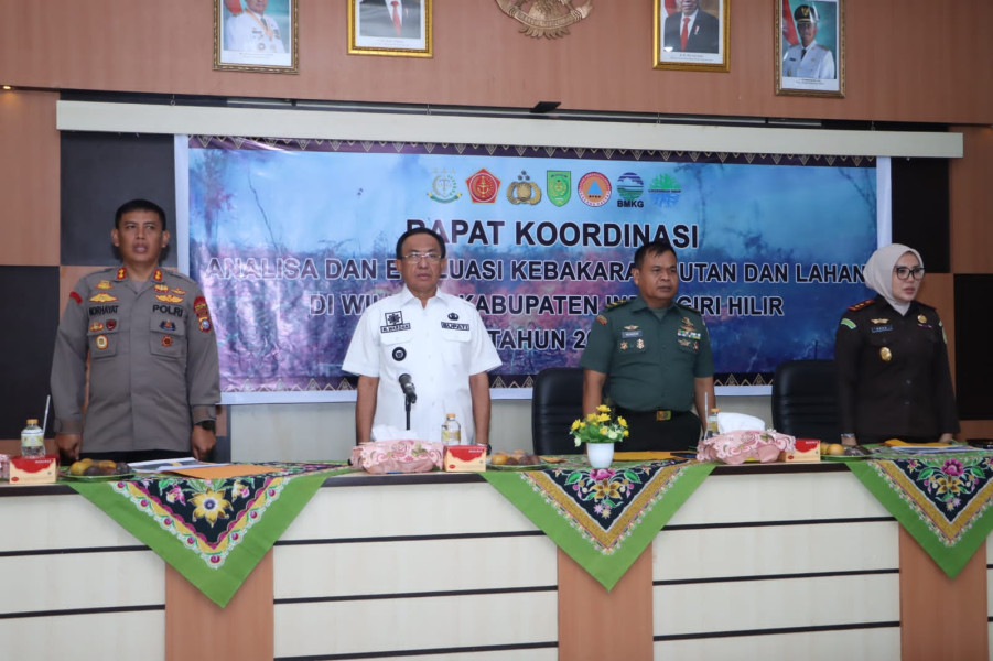Rakor Anev Penanggulangan Karhutla tersebut dipimpin Bupati Inhil HM Wardan bersama Kapolres AKBP Norhayat dan Dandim 0314/Inhil diwakili oleh Pasi Pers Letda Arm Muchazzar serta Kajari Inhil Nova Fuspitasari SH MH.