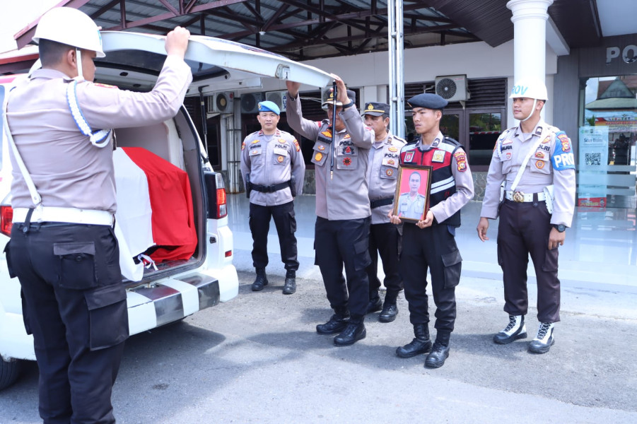 Kapolres Inhil AKBP Norhayat menyampaikan rasa duka yang mendalam atas kepergian salah satu anggotanya, dan mendoakan pihak keluarga agar tetap tabah dan mengikhlaskan kepergian almarhum.