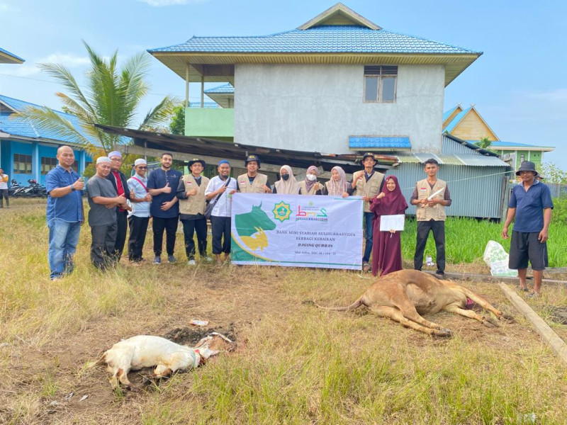 Tembilahan, - Bank Mini Syariah (BMS) STAI Auliaurrasyidin Tembilahan berbagi kebaikan daging kurban, Jumat 30 Juni 2023, kegiatan ini dilaksanakan di areal kampus STAI Auliaurrasyidin Tembilahan.