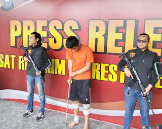 Pelaku berumur 24 tahun terpaksa mendapat tindakan tegas terukur, kedua kakinya mendapat luka tembak akibat melawan petugas saat dilakukan pengembangan.