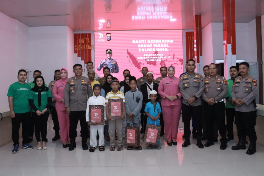 Kapolres Inhil AKBP Norhayat mengatakan, kegiatan bakti kesehatan Polri yang diselenggarakan dalam rangka HUT ke-77 Bhayangkara.