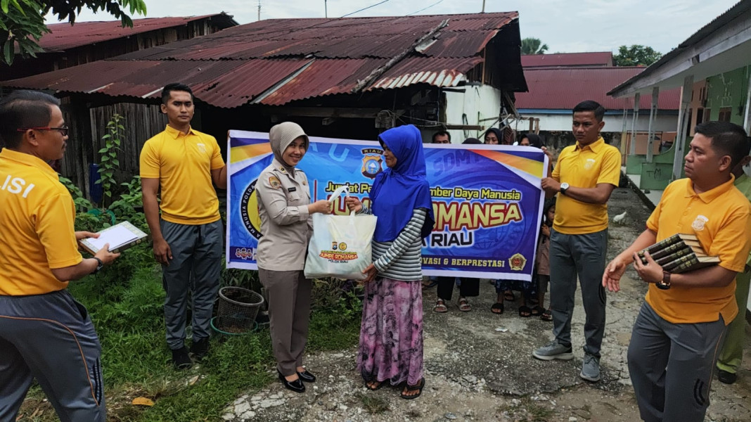 Kepala Biro Sumber Daya Manusia KOMBES POL JOKO SETIONO, S.I.K., S.H., M.Hum melalui Pamen Biro SDM Polda Riau AKBP MUHAMMAD IKHSAN, S.Sos. mengatakan kegiatan Jumat berbagi Sembako, Al-Quran dan uang santunan ini dilakukan rutin setiap Jumat pagi.
