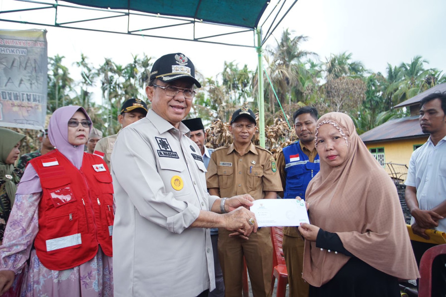 Bupati Inhil Salurkan Bantuan Kebakaran kepada Warga Terdampak di Desa Pebenaan