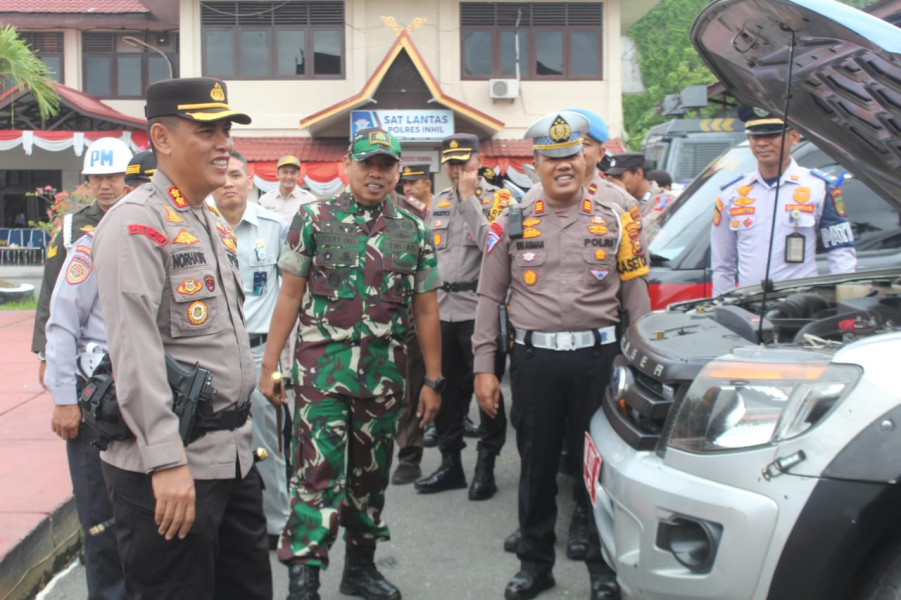 Inhil,- Dandim 0314/Inhil Letkol Inf Fikky Nur Kuncoro Jati,S.H.,M.Han menghadiri kegiatan Apel gelar pasukan operasi kepolisian kewilayahan Dengan sandi "patuh lancang kuning-2023"dalam rangka cipta kondisi kamseltibcarlantas pasca pelaksanaan hari Bhayangkara tahun 2023 bertempat di lapangan Mapolres Inhil Jl.Gajah Mada No 02 Tembilahan, kabupaten Indragiri hilir,Senin(10/07/2023).