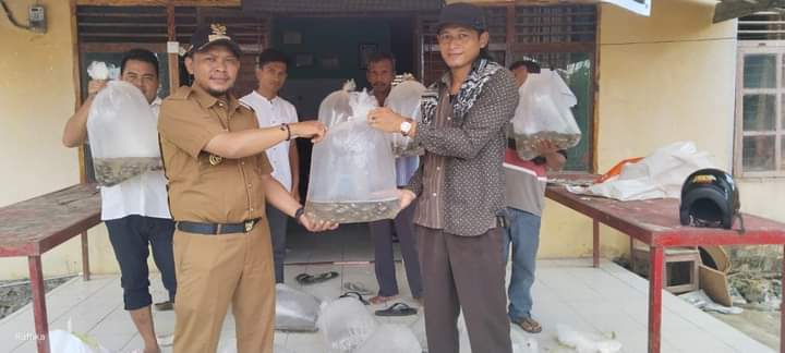 Pemdes Kemuning Muda Salurkan Bibit Ikan Gurame kepada Masyarakat
