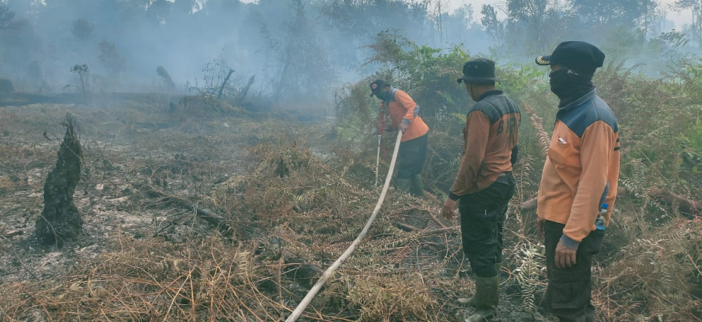 Pemadaman dan pendinginan Karhutla dilakukan oleh Badan Penanggulangan Bencana Daerah (BPBD) Kabupaten Indragiri Hilir (Inhil) bersama masyarakat dan pihak terkait, Selasa (1/8/2023) pagi.