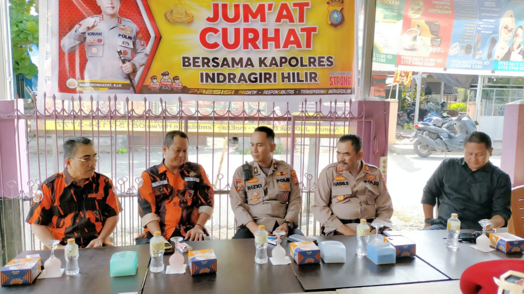 Inhil,- Polres Inhil menggelar Jumat Curhat bersama Ormas Pemuda Pancasila cabang Inhil, 22 September 2023 di salah satu Jalan Datuk Bandar Tembilahan.