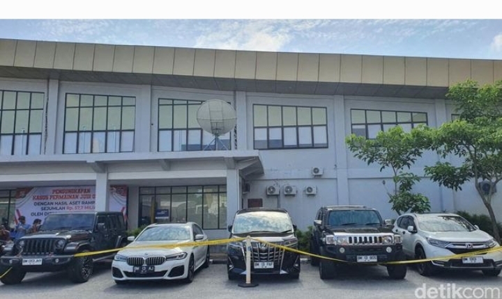 Pekanbaru,- Dari Pantauan media barang mewah senilai 57,7 milyar lebih disita Polda Riau dari Tersangka Bandar Judi Online di Pekanbaru, Jum'at (22/9/2023).