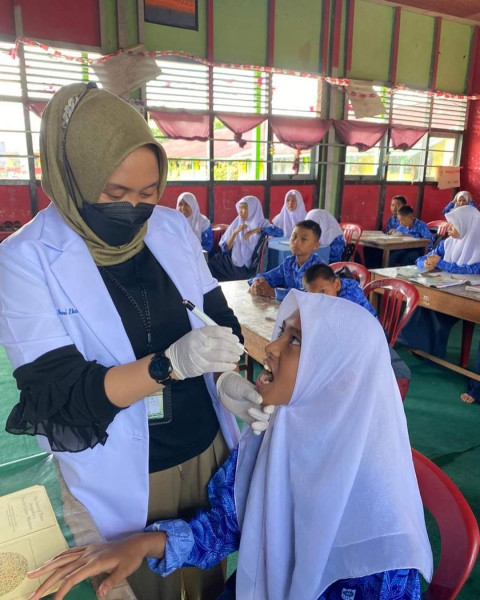 Kegiatan penjaringan kesehatan gigi di dilaksanakan di SMP Muhammadiyah Tembilahan, Jl Pendidikan.Tembilahan, Jumat (16/9/2023).