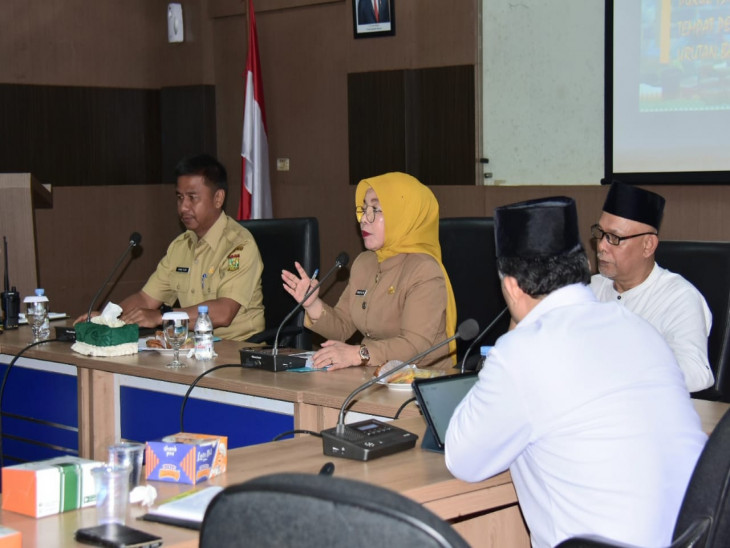 INDRAGIRIONE.COM, BANGKINANG - Pj Sekda Kampar, Ramlah MSi memimpin rapat persiapan Musabaqah Tilawatil Quran (MTQ) Tingkat Provinsi Riau di Ruang Rapat Lantai III Kantor Bupati, Senin (23/10/2023).