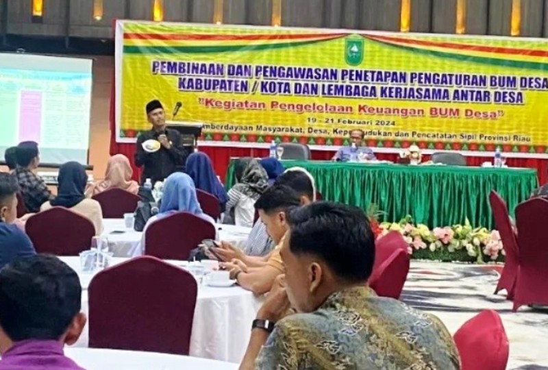 INDRAGIRIONE.COM, PEKANBARU – Anggota Komisi I DPRD Provinsi Riau Daerah Pemilihan Kabupaten Indragiri Hulu (Inhu) dan Kuantan Singingi (Kuansing), Mardianto Manan, menjadi narasumber atau pembicara dalam kegiatan pengelolaan keuangan Badan Usaha Milik Desa (BUMDes), serta pembinaan dan pengawasan penetapan pengaturan BUMDes kabupaten/kota dan lembaga kerjasama antar desa, di Ballrom Hotel Furaya.