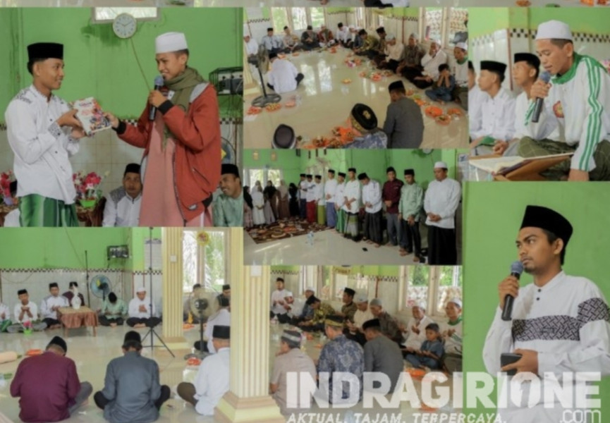 INDRAGIRI HILIR, INDRAGIRIONE.COM,- Kepala Desa (Kades) Limau Manis, Hermansyah dan Kades Lubuk Besar, Tri Aprianto menghadiri halal bi halal Idul Fitri 1445 Hijriah dan Simaan hafidz dan Hafidzah Qur'an 30 juz, Minggu (21/4/2024), di Mushalla Al Ikhlas.