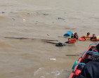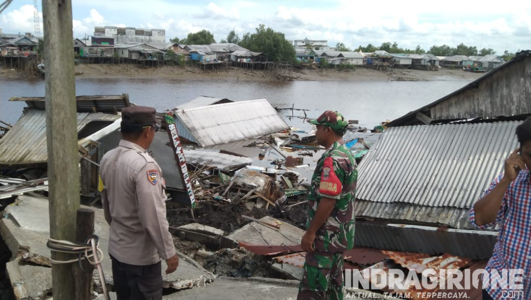 "Ada 6 rumah warga, pos kamling dan jalan umum sekitar 30 meter yang ambruk ke sungai," kata Kapolsek Tanah Merah Iptu Edi Saputra.