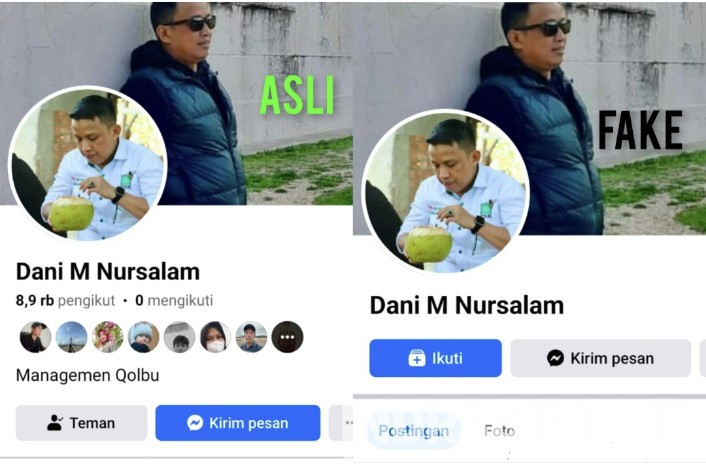 Modus yang dilakukan penipu dengan menggunakan media sosial Facebook. Akun mencantumkan nama lengkap Dani M Nursalam, bahkan foto profil dan foto latar juga dipersamakan dengan akun Facebook milik Ketua Harian DPW PKB Riau itu.