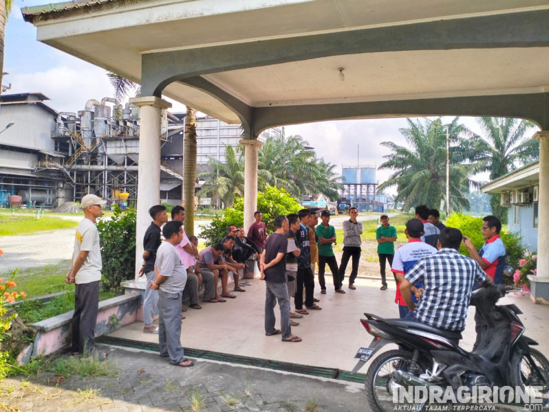 Karyawan PT ASI PKS Kempas mendatangi pihak management yang beralamat di Jalan Lintas Provinsi Rengat - Tembilahan Desa Sungai Gantang, Sabtu (18/5/2024).