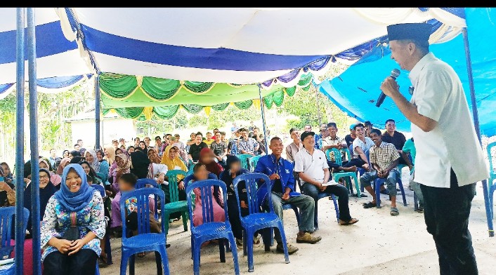 Indragiri Hilir - Cuaca siang itu di Desa Sungai Rukam sedang terik sekali, emak-emak yang berkumpul sesekali terlihat mengipas-ngipas kertas yang sengaja dibawanya dari rumah ke arah wajah.