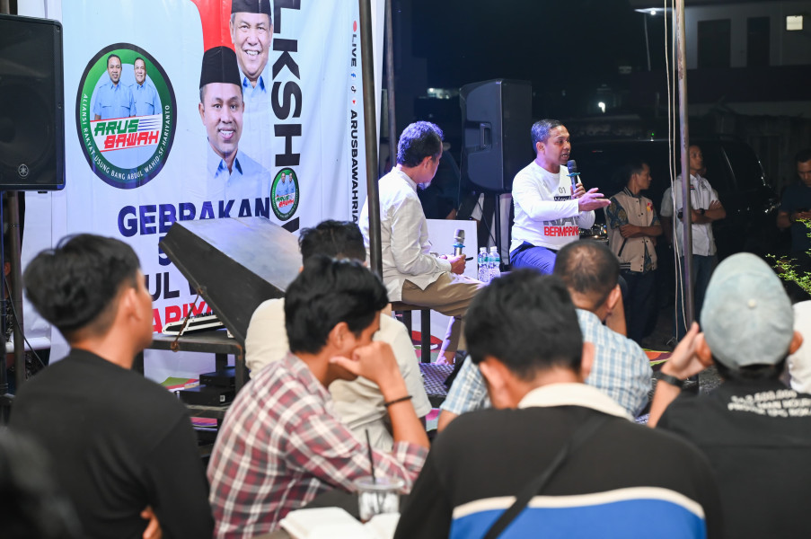 INDRAGIRIONE.COM, PEKANBARU - Arus Bawah Riau mengadakan talkshow bertajuk "Gebrakan 5 Tahun" dengan Calon Gubernur dan Calon Wakil Gubernur Abdul Wahid - SF Hariyanto di Warung Majopi Panam, Senin (21/10/24). Acara ini dihadiri oleh aktivis, panelis pendidikan, perempuan dan kebudayaan, konten kreator, serta penggiat lingkungan.