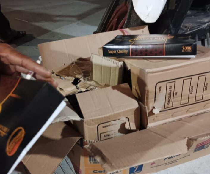 "Setelah dibuka sendiri oleh yang bersangkutan ternyata logistik berupa kain sarung berjumlah 30 lembar, target mereka di Kelurahan Benteng Utara," jelasnya.