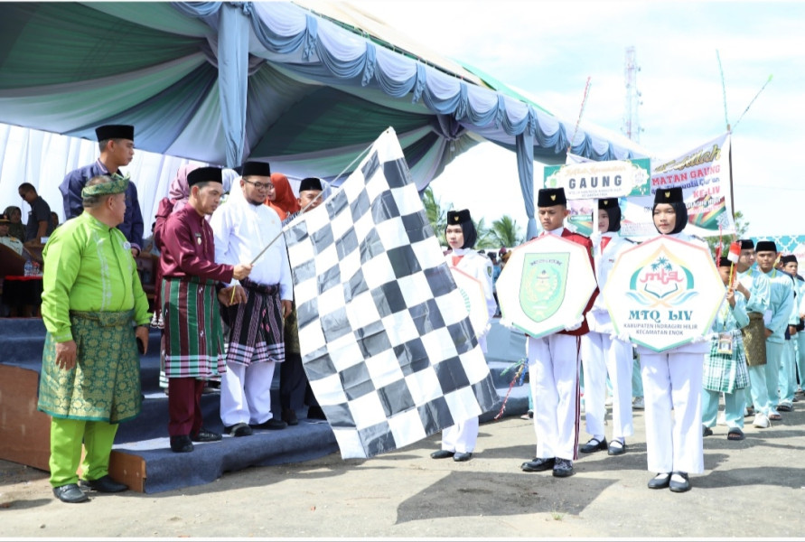 INHIL,- Ketua DPRD Indragiri Hilir (Inhil), Iwan Taruna menyaksikan pelepasan Pawai Ta’aruf Musabaqah Tilawatil Qur’an (MTQ) ke 54 Tingkat Kabupaten Inhil di Kecamatan Enok, Minggu (15/12).