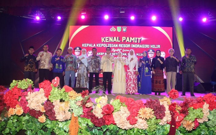 Indragiri Hilir,- Pj Bupati Indragiri Hilir (Inhil), H Erisman Yahya bersama Forkopimda menghadiri acara Kenal Pamit Kapolres Inhil yang digelar di Gedung Engku Kelana, Selasa (14/1/2025).