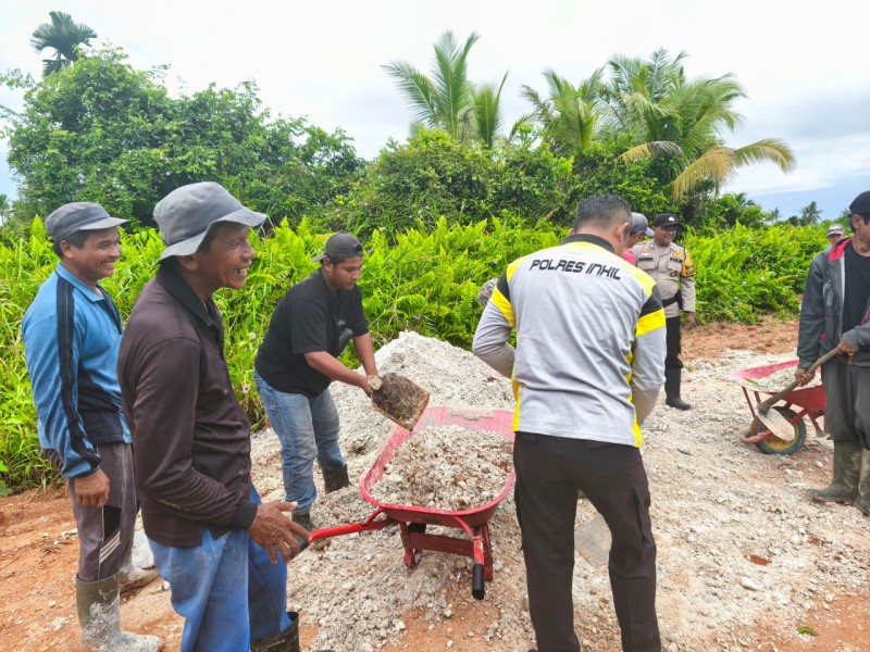 Kapolsek Sungai Batang Berbaur Gotong Royong Perbaiki Jalan