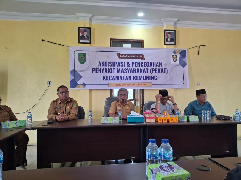 Indragiri Hilir,- Pemerintah Kecamatan Kemuning menggelar Rapat Koordinasi Antisipasi dan Pencegahan Penyakit Masyarakat (Pekat) yang dihadiri oleh seluruh kepala desa, Ketua BPD, ketua Lembaga Adat Melayu Riau (LAMR), Tokoh Adat, Tokoh Agama, Tokoh Masyarakat se Kecamatan Kemuning di Desa Batu Ampar pada selasa (20/05/2025).