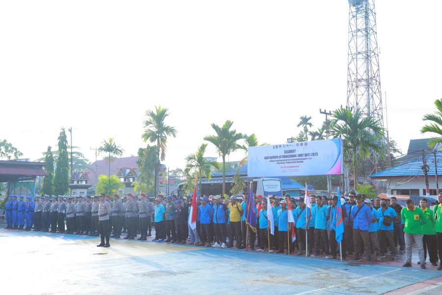 Indragiri Hilir,- Polres Indragiri Hilir (Inhil) dan para Buruh melaksanakan Apel dan Bhakti Sosial dalam rangka Hari Buruh Internasional (mayday), Kamis (1/5/2025)