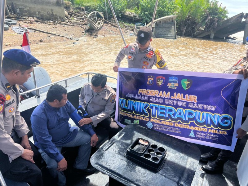 Satpolairud Polres Inhil Gelar Klinik Terapung, Warga Pesisir Sungai Indragiri Antusias Sambut Program JALUR