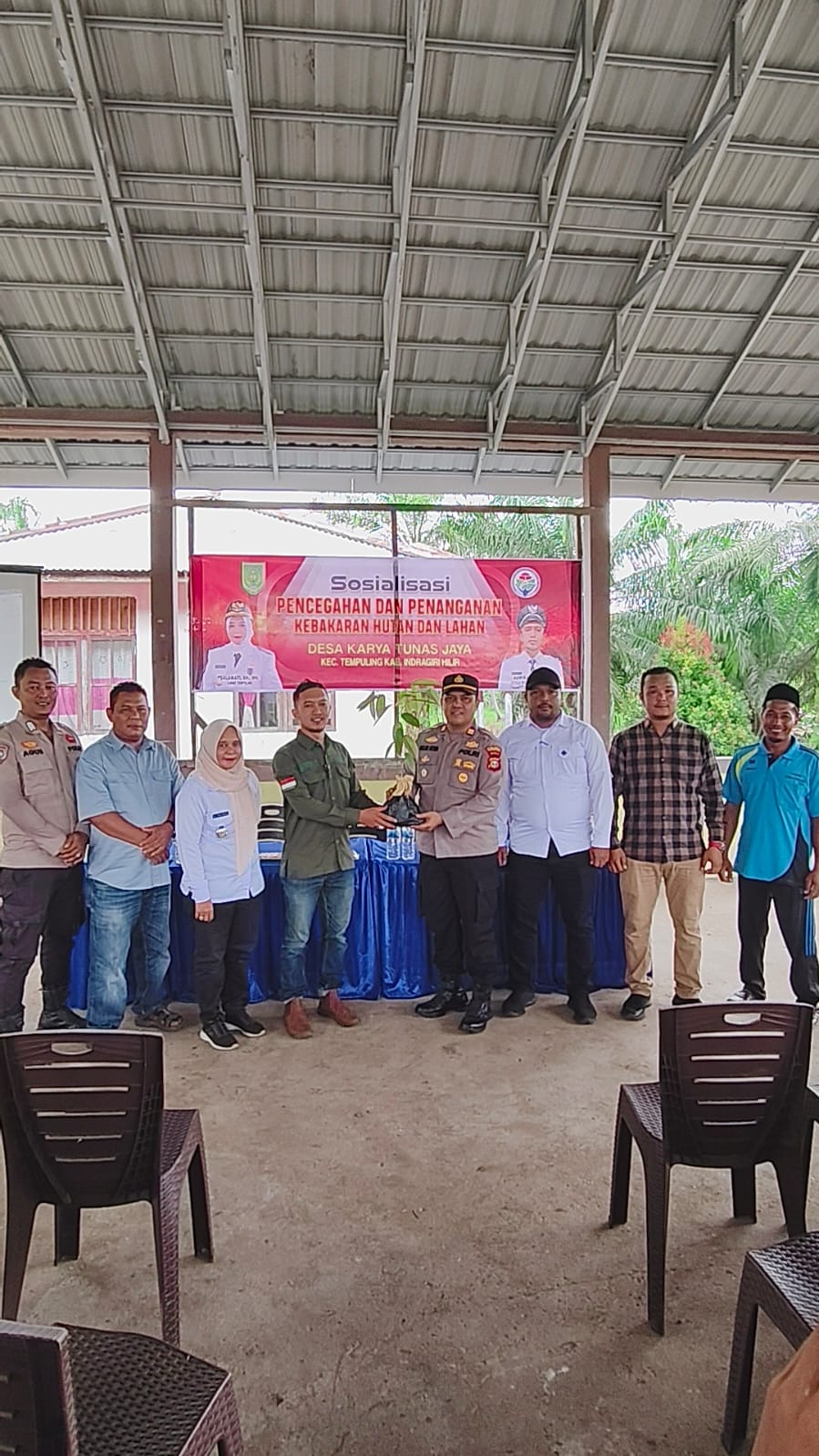 Polsek Tempuling Serahkan Bibit Pohon Dalam Sosialisasi Pencegahan Karhutla Di Desa Karya Tunas Jaya