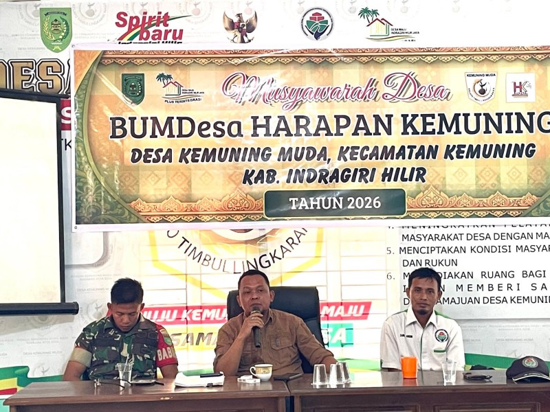 Indragiri Hilir, (Senin, 9 Februari 2026),- Pemerintah Desa melaksanakan Musyawarah Desa BUMDesa Harapan Kemuning Desa Kemuning Muda, Kecamatan Kemuning, Kabupaten Indragiri Hilir Tahun 2026.