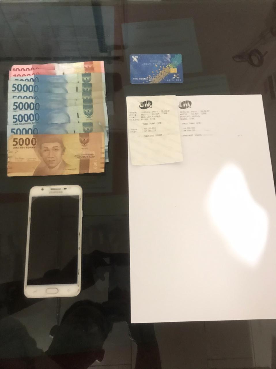 "Barang bukti yang dapat diamankan berupa, Uang tunai sebanyak Rp 505.000,- (lima ratus lima ribu rupiah), 1 (satu) unit handphone merk Samsung galaxy J7 prime warna putih, 1 (satu) buah kartu ATM BRI yang berisi uang tunai Rp. 950.000,- yang merupakan hasil dari tindak pidana perjudian jenis togel, 1 (satu) lembar kertas slip penarikan uang via ATM,"Jelasnya